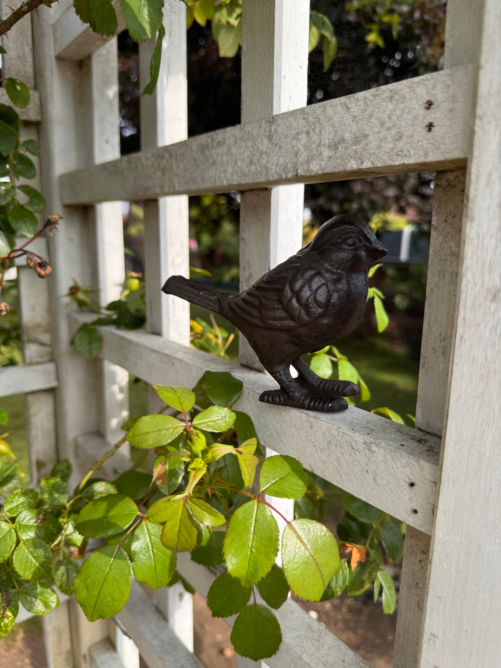 Perfect for placing on garden walls, shelves, or nestled among plants, this bird combines rustic appeal with enduring strength, making it a standout feature in any setting.