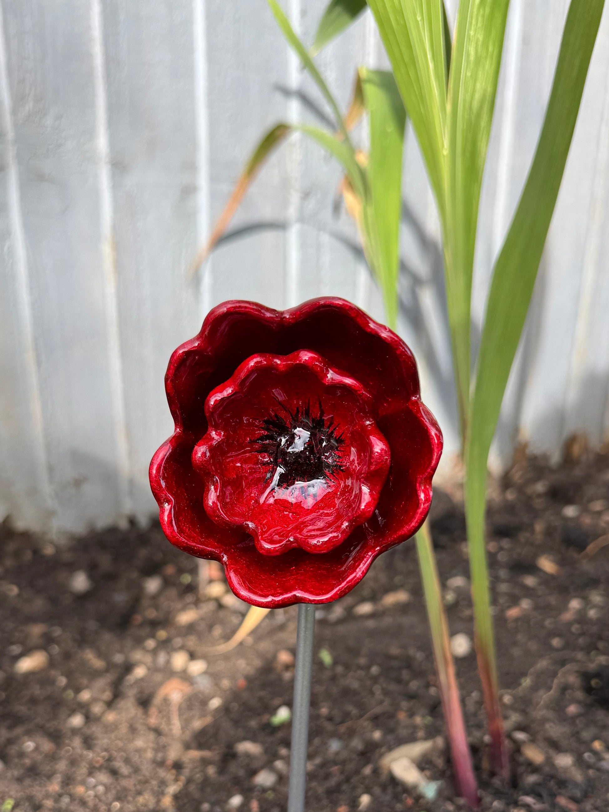 Striking Red Poppy is more than just a decoration—it’s a versatile four-in-one design. Each flower can stand beautifully on its own, or—with the addition of a separate attachment—be transformed into a plant stake, pot stake, or wall hanging, making it easy to display wherever you choose.