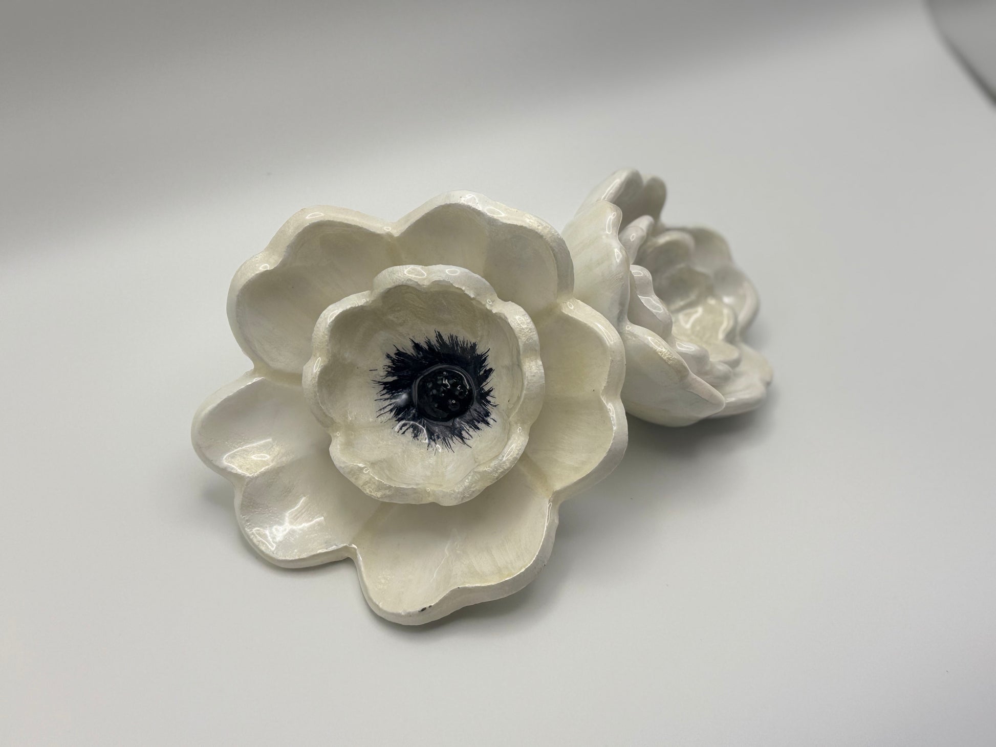 Striking White Poppy is more than just a decoration—it’s a versatile four-in-one design. Each flower can stand beautifully on its own, or—with the addition of a separate attachment—be transformed into a plant stake, pot stake, or wall hanging, making it easy to display wherever you choose.